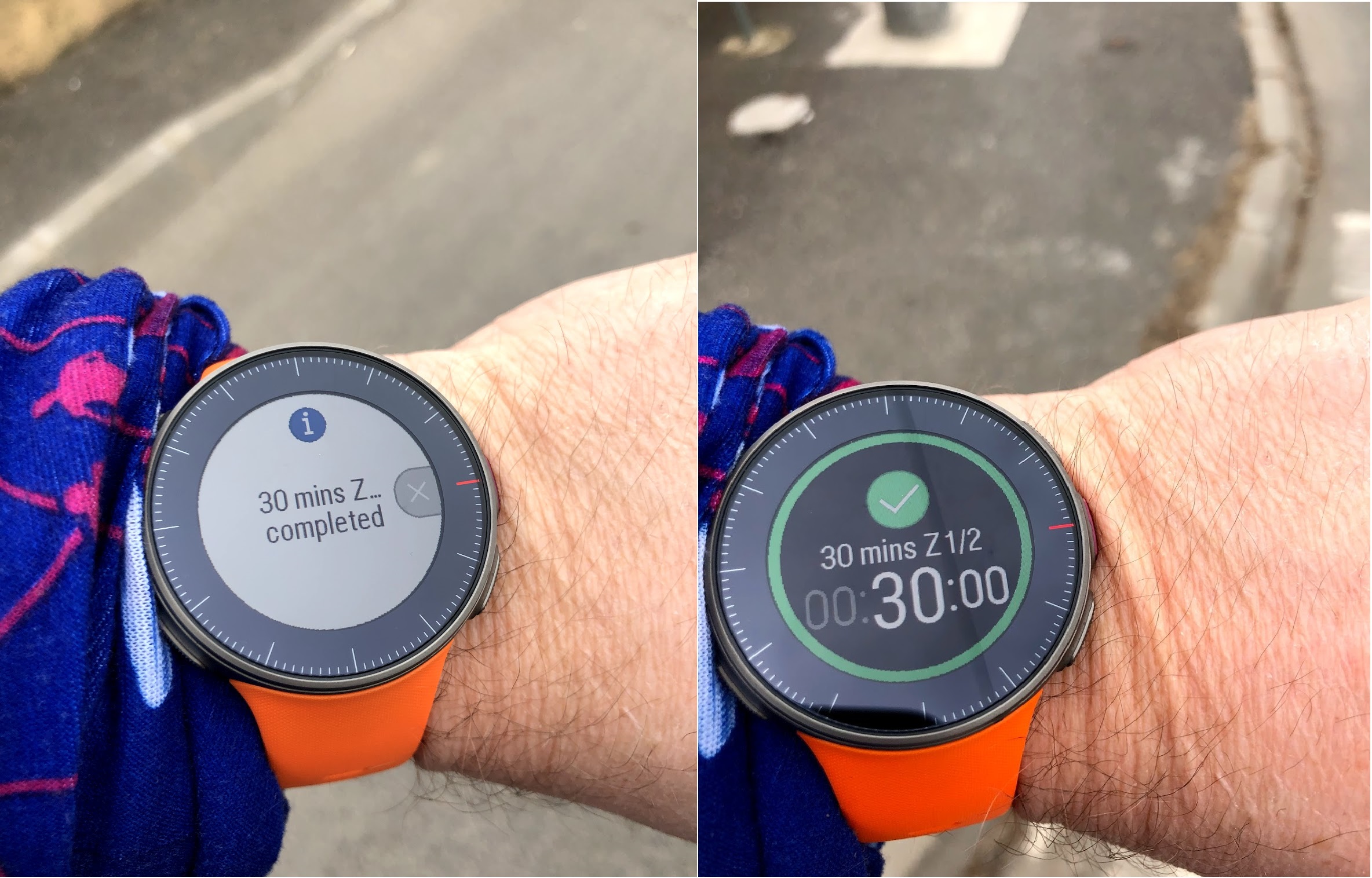 I know I mentioned that when finishing a phased workout, Polar displays the information screen which doesn’t disappear if you don’t press the Menu/Back button twice (at least this is how I managed to get rid of the screens to get to the regular running screen). I see this a annoyance and a UX flaw which can be easily fixed with an automatic switch to the running screen after some seconds.