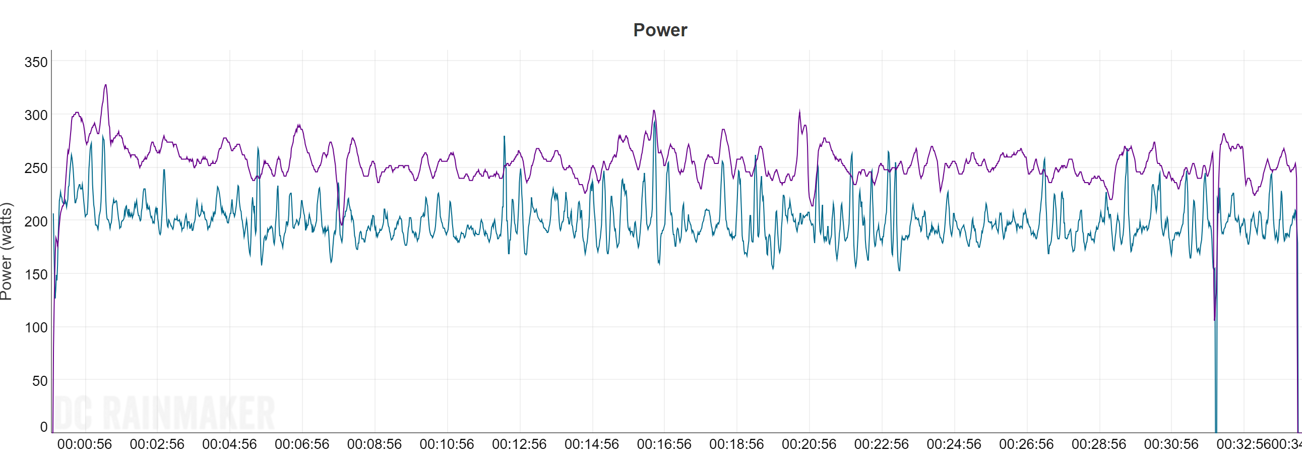 I know that we are not comparing exactly apples with apples when looking at the power measurements from Vantage V and Stryd because of their different algorithms, but at least we should look if those are consistent in behaviour – which they are: