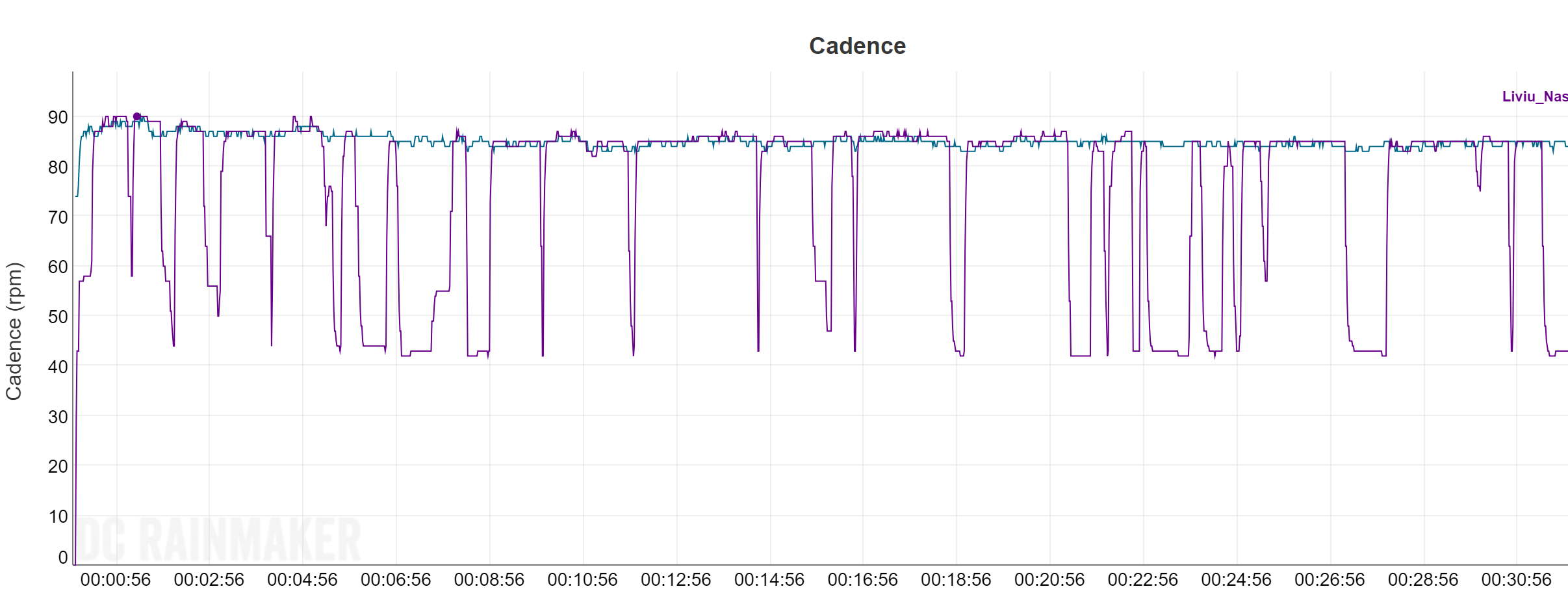 This is not the most relevant test, you can’t see their sensitivity when changing the terrain or pace – I’ll do that in a later test and see how they respond to changes. At least for now, I’ll stay with the impression that Stryd is more responsive since I almost stopped at minute 31, Stryd has a drop to zero – Vantage shows some inertia (because is on my hand which is still moving).