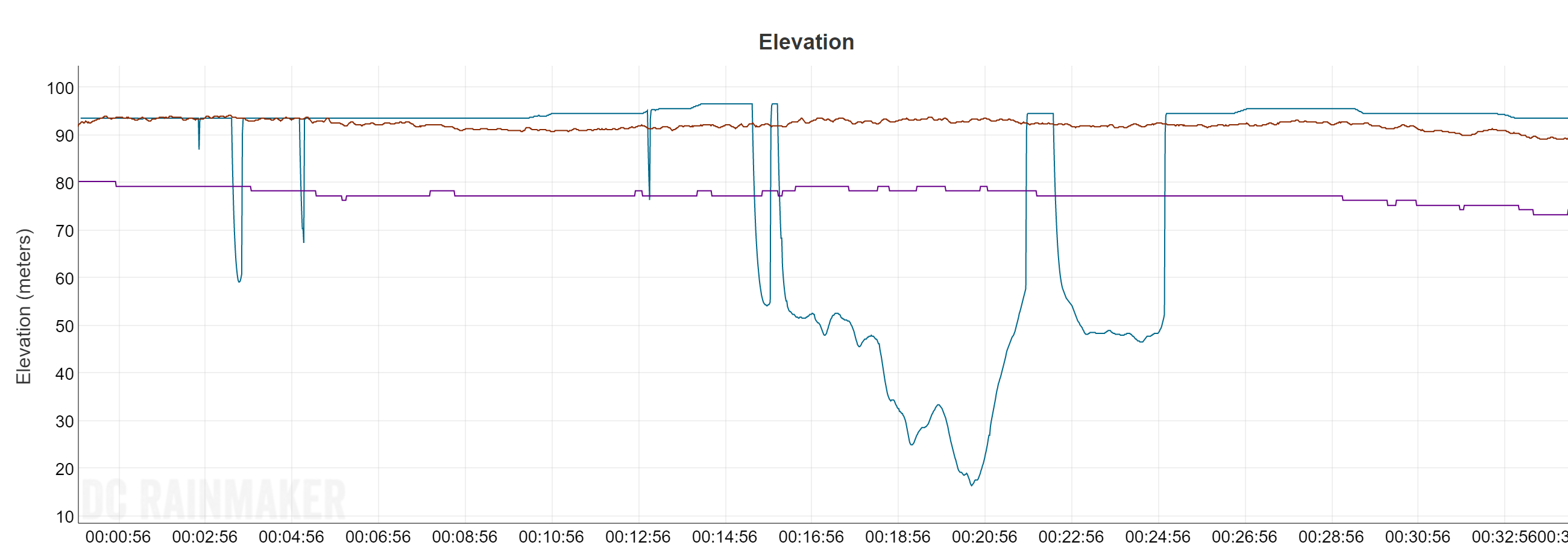 The elevation was different, but I didn’t bother so much .. Vantage started with an altitude of 80m, Fenix with 92m and they performed kind of the same during the workout. Stryd had some strange variations…but at the end of the workout comes closest to the real value (92m). It was a windy day, things are easily messed up – I’ll keep an eye on it.