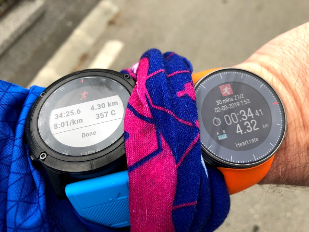 - Garmin Fenix 5X+: 4.30km, 144bpm AVG HR (starting with 92bpm but with a strange reading in the first 6 minutes and a maximum of 181bpm!)