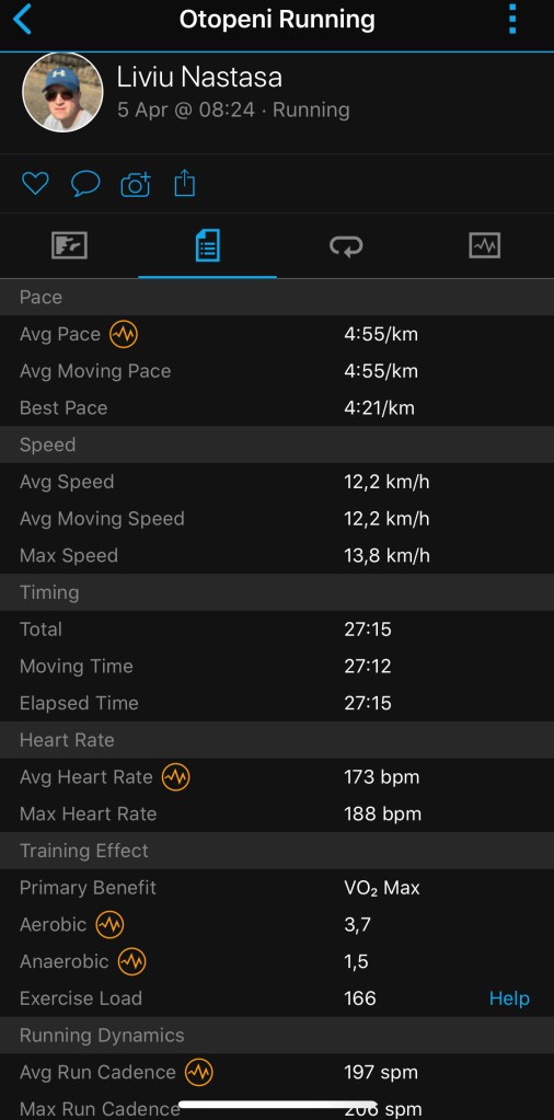 Instant Pace – one thing which I noticed when wearing both watches during running sessions was the difference from Polar Vantage compared with Garmin .. actually is more with Stryd, because Garmin was displaying the pace from Stryd. I saw a lot of variability in the pace number, with unjustified changes of almost 1 min/km in pace .. that’s too much, regardless of how much I was cornering on a street. I’m not saying that Garmin’s instant pace is good, because I didn’t measure it, but for sure Polar’s is unreliable, so you can’t just use that in a race (maybe I should have used the race pace feature to test it .. but I didn’t).