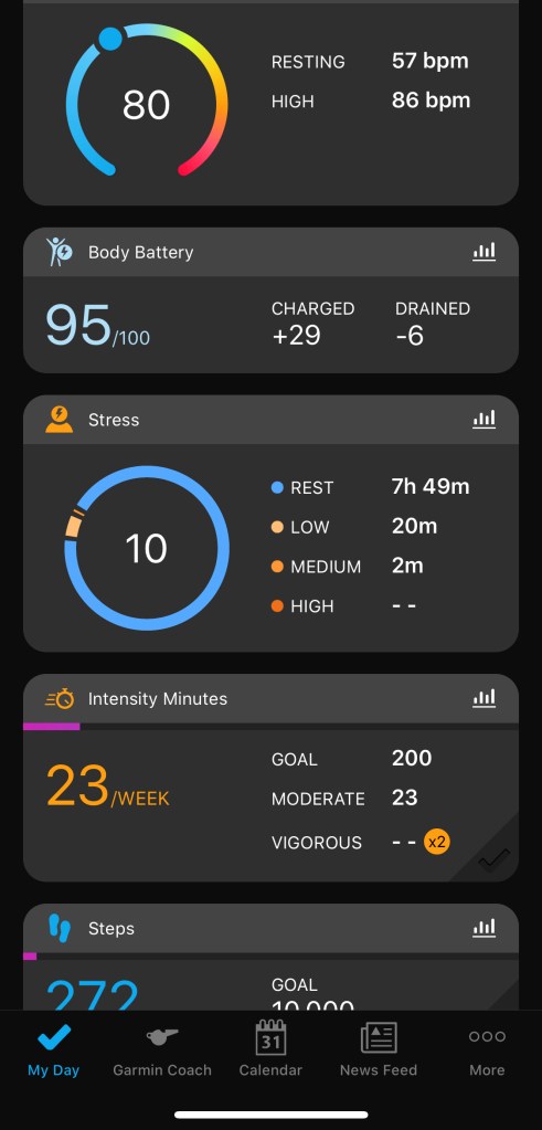 What do you do with all those? Glancing over a bit, going maybe into some details for sleep, recent activities (yours or your connections) and that’s kind of it. You can do a lot, but may feel overwhelmed with all the info provided that’s not very actionable.