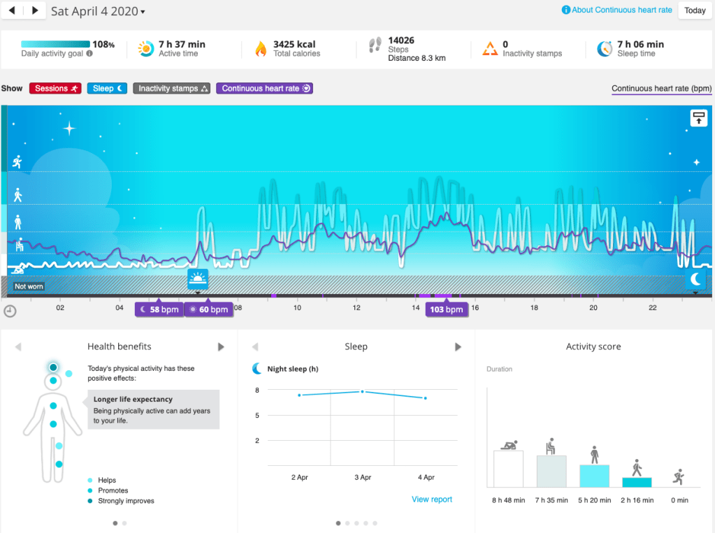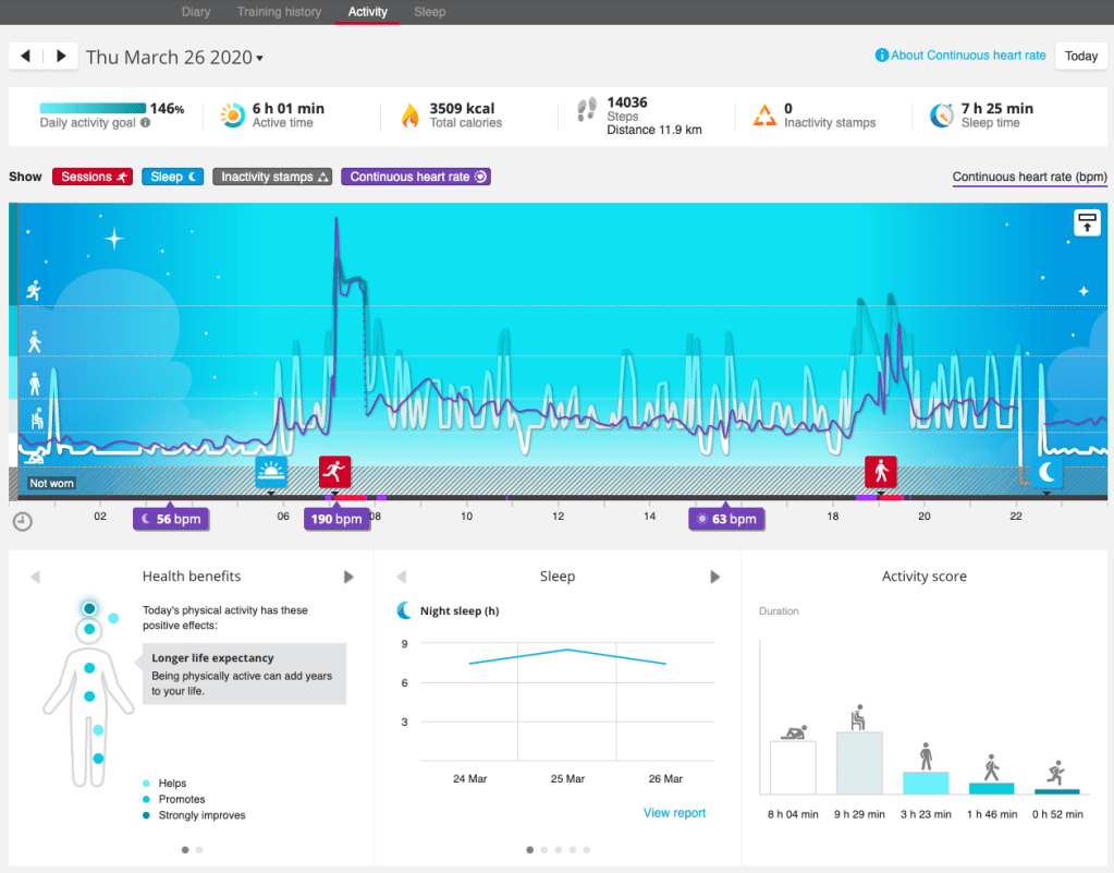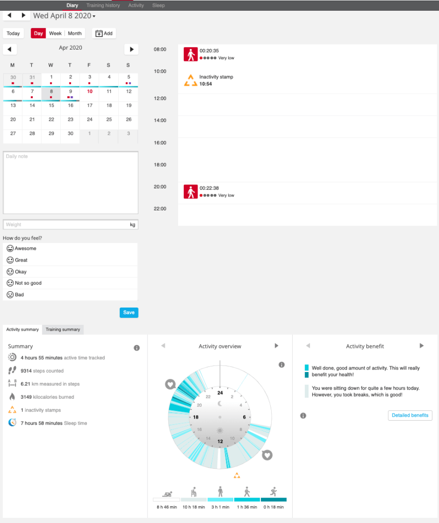 I found the daily activity screen to be very useful because it gives you access to all important information in a nice way – this is in my opinion the best summary for a day (it’s also replicated in the mobile app).