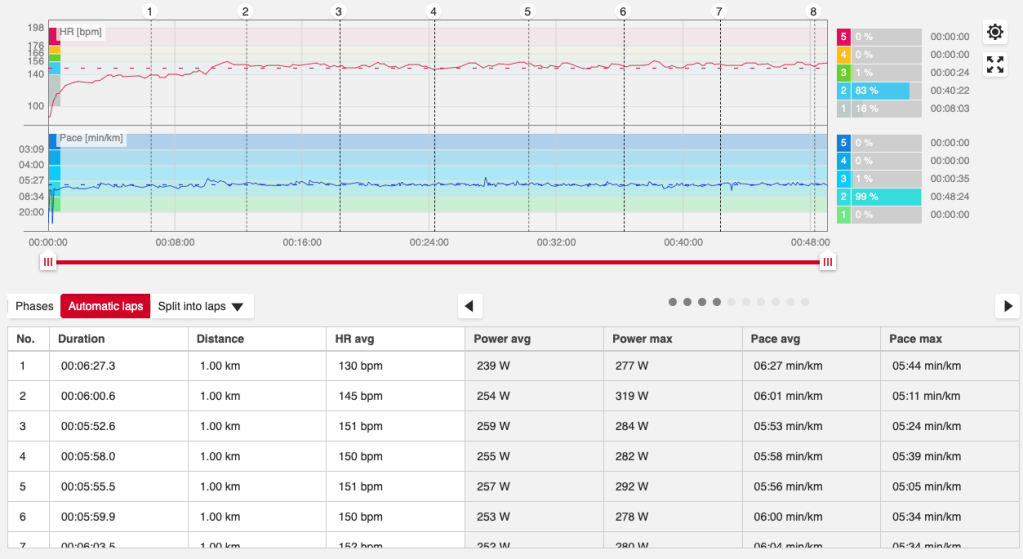 One thing that Polar nicely offers (and Garmin doesn’t) is that for structured workouts, you can have the lap markers and the phases separate and not interfering. For example, you cand 2-3 phases, and automatic 1km laps and those are not affecting one another.