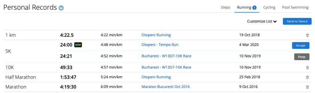 The mobile app from Garmin mirrors most of the platform data on the mobile phone, being a powerful companion for viewing and editing a lot of data – for example you can define RacePace strategies, courses, workouts similar to what you can do on web. Except for some exports you can do on the web app, nothing is missing (or I didn’t miss) from the mobile app.