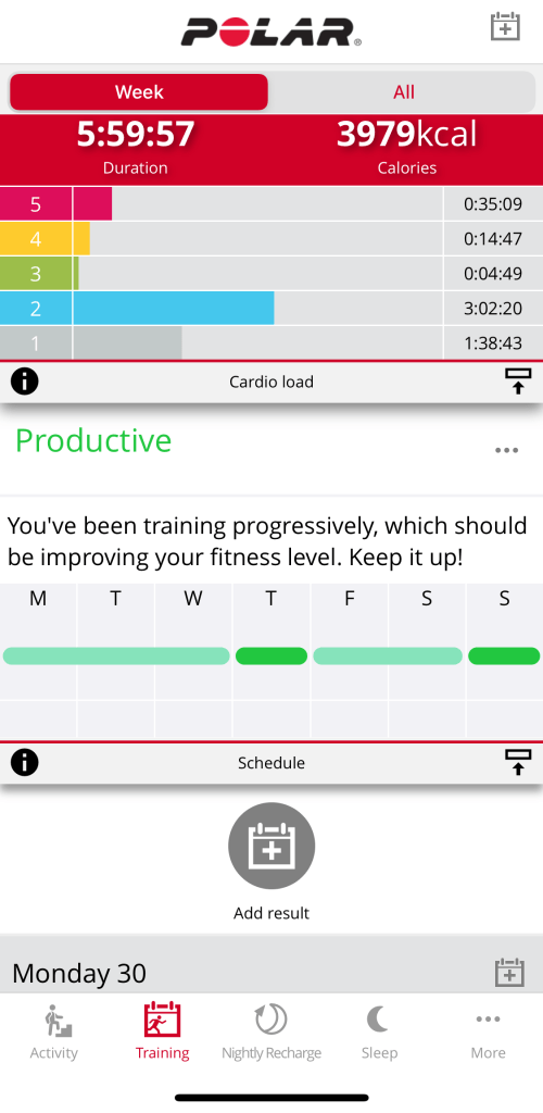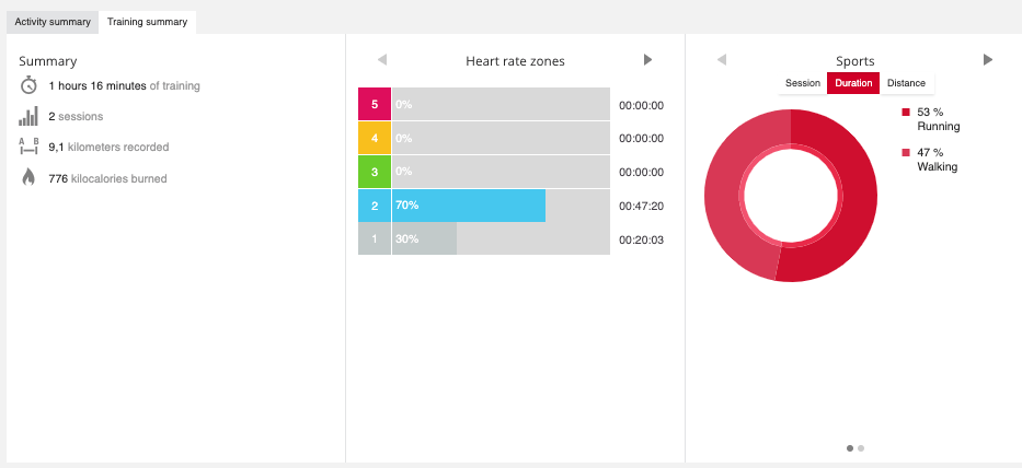 Polar has two apps (mobile and web) which may look not very fancy in terms of interface, but they are decent and provide the information you need. The approach with the available options on different platforms is not very much balanced like with Garmin, but more on web, mobile than the watch. If I’d have to score the availability of options/customization/features on each platform (without comparing the platforms), I would say the the distribution is:
