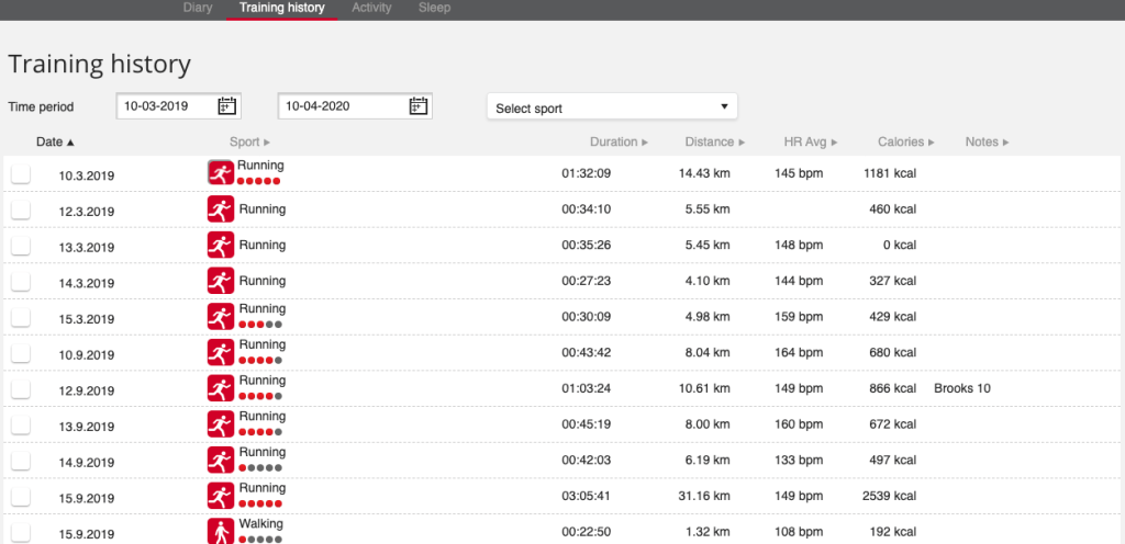 When you look over your activities, Polar has some limitations that I don’t understand – you don’t have true means of searching something except if you know exactly the date. No other search fields .. that might create issues to identify (and compare) all your marathons in the last 5 years.