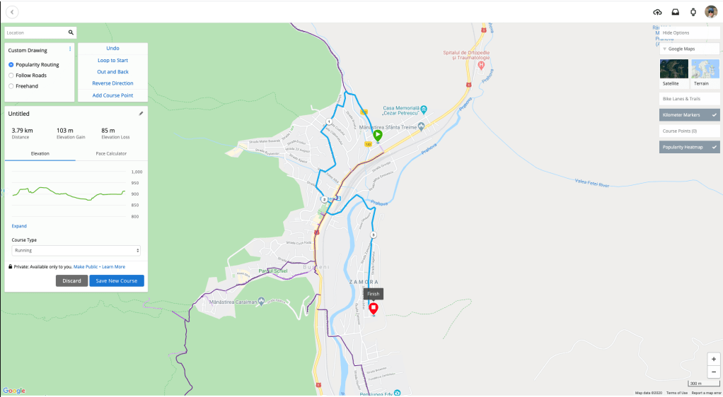 Another option is to define your own courses using the map and the info Garmin has regarding routing – this is nice, since you can send the route on your watch and navigate it with full map support.