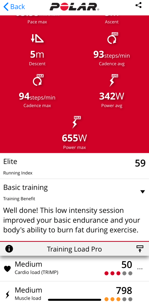 Regarding the GNSS performance, the reality these days is that both watches are decent, they use the same Sony chipset and the results in similar configurations (best accuracy, GPS+Glonass) are close. Since I use the Stryd with is reliable for measuring the distance and pace, the comparison below is actually between Polar Vantage V and Stryd. For HR, I usually used the H10 strap shared between both and therefore nothing to compare.
