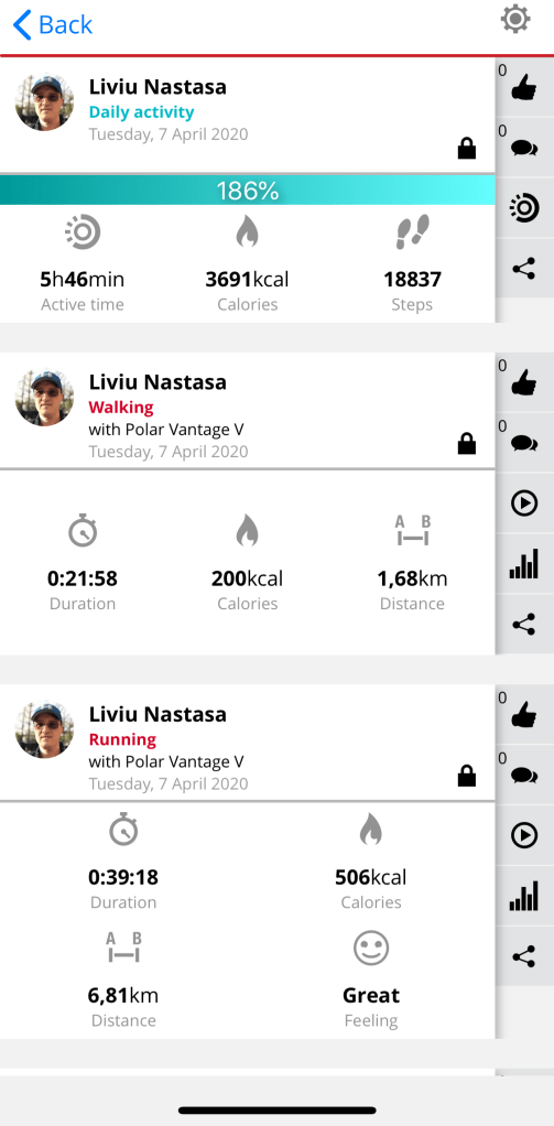 There are two solutions available for those who sync their training sessions between platforms (for example Garmin Connect and Polar Flow) – I used successfully RunGap (link here) to move things between Garmin and Polar. RunGap is only available on iOS, for Android you may use for the same purpose SyncMyTracks (link here) – I didn’t use it, because I’m using primarily iOS devices. I don’t know what APIs RunGap or SyncMyTracks have used, if they are public or not, but, in my mind, Polar should consider opening up for import the platform since that Flow is one of their strengths and one of the reasons people use their devices.