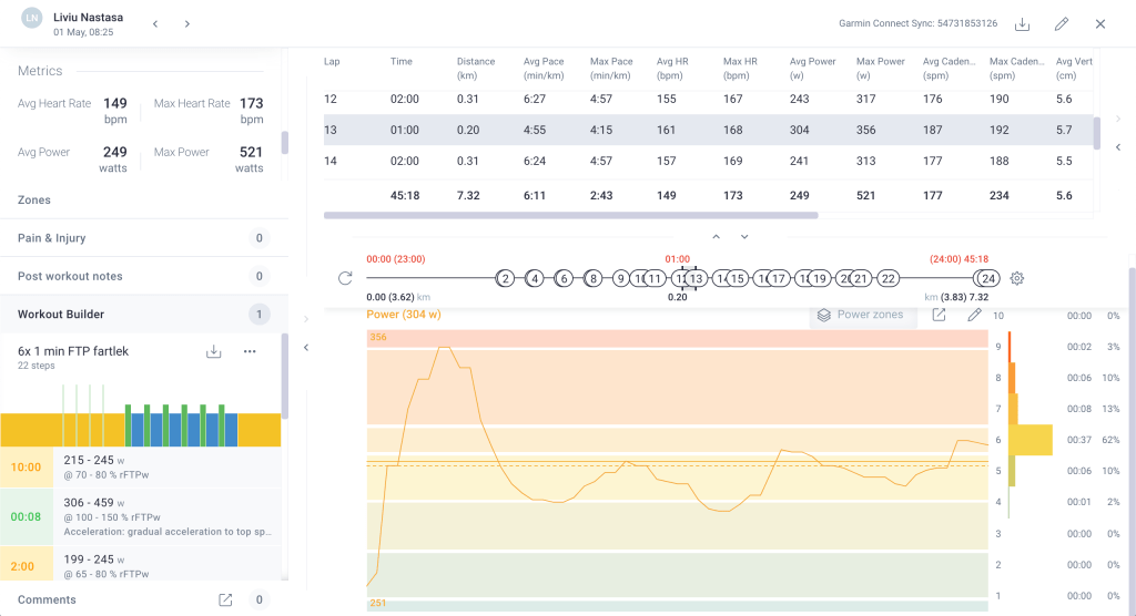 The sync of the executed workouts is seamless, Final Surge matched my run with Stryd app with the planned workout and I could see it in the analysis – which is a nice and powerful solution, blending the flexibility of Garmin Connect and the intuitive representation from Polar Flow.