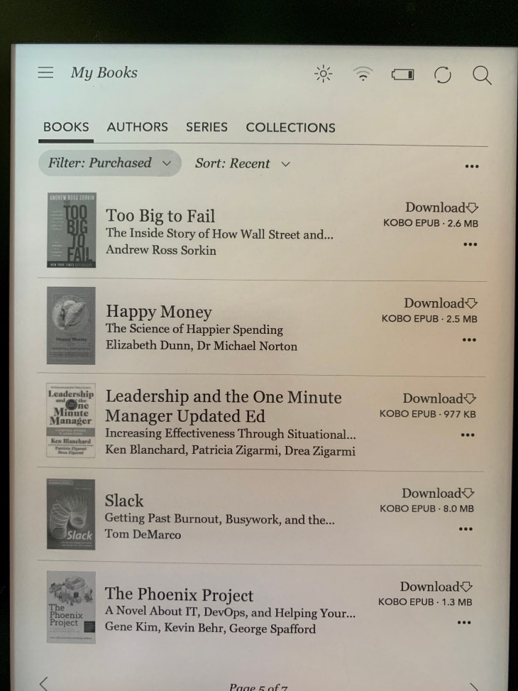 My Books interface – easy to use and intuitive (I’d say better than Kindle’s)