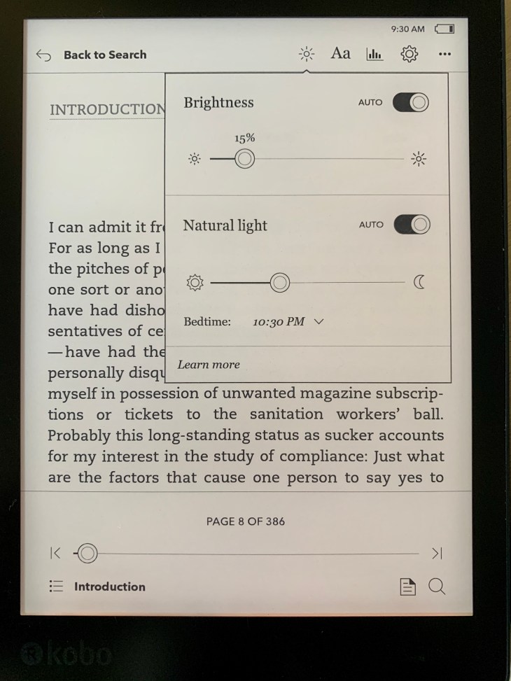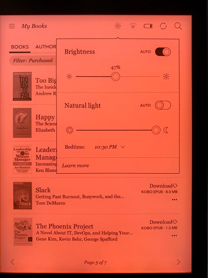 In terms of light, when I read on Paperwhite which is perfectly fine for reading in the dark, I miss the warm light of the Kobo Aura One and also the even distribution of the light.