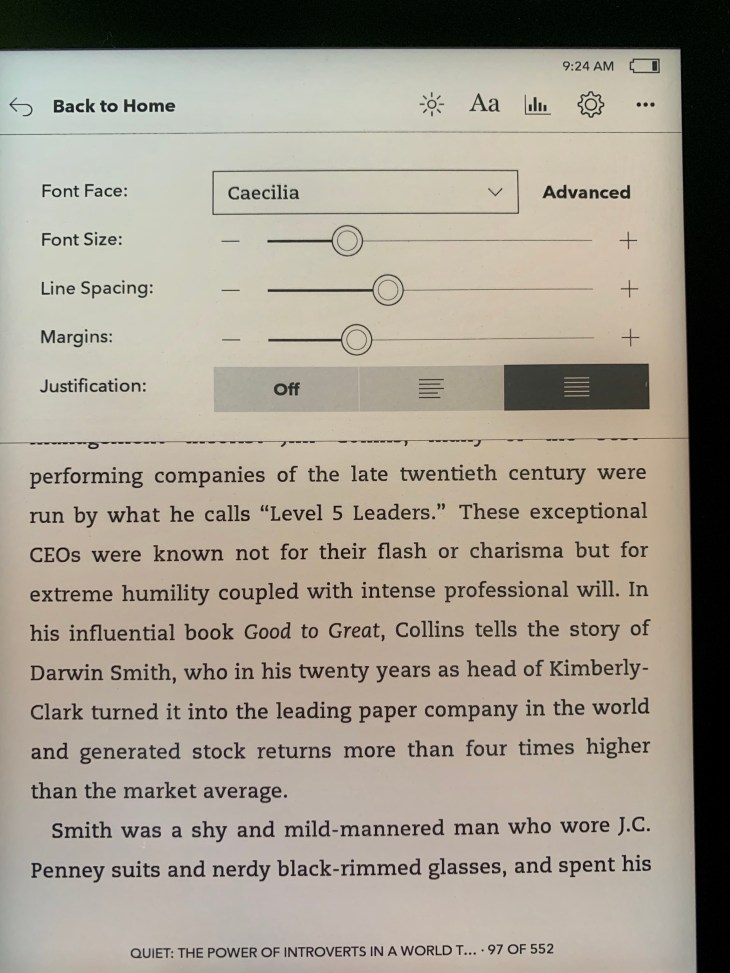 One of the strengths of Kobo is the font management and flexibility, being highly customizable.