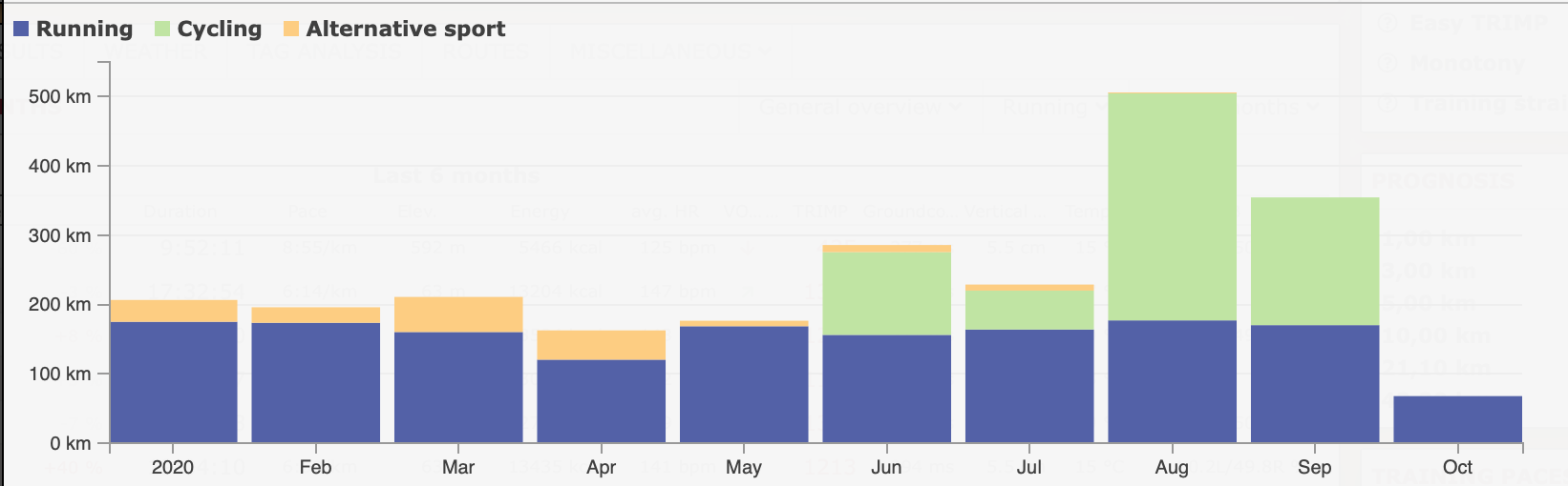 I feel like 2020 is a year different when compared with the previous, on different areas, it’s easy to figure out. One of the areas is the approach to training, which changed (for me) and I want to share some thoughts and personal observations. Now that most of the running competitions in Europe (at least) are canceled or at best organised virtually, I had a look over what changed since the beginning of this year, other than not participating in any events – the data is there, ready to be analysed.