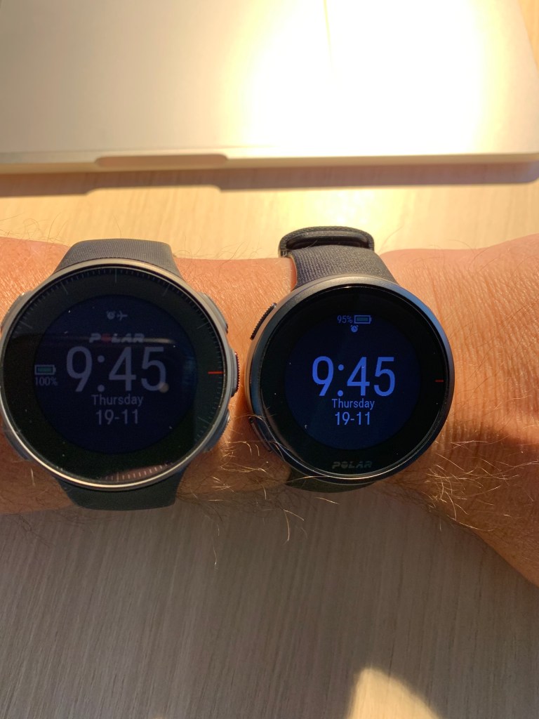Anyway, first impressions after one run, wearing both Vantage V: VV2 on my left hand, VV on right hand, same settings, Vantage V using the Stryd connection to measure distance, power and pace, both of them using the oHR for measuring the heart rate.