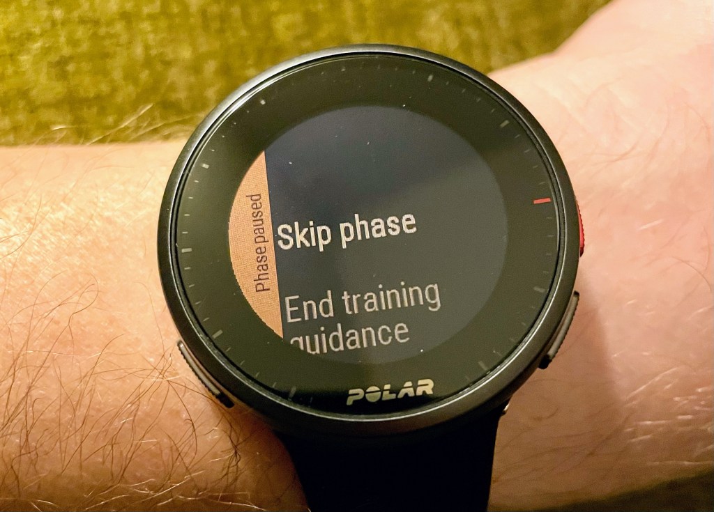 Since last week I decided to follow the Polar half marathon running plan, I’m using exclusively the Polar Vantage V2, with all it has to offer. I noticed that at least for Vantage V2, starting with 2.0.6 firmware (I don’t know if that was also available in the 1.x firmware) there is the possibility to skip the phase of one structured workout – one of the missing features I noticed when compared with Garmin.