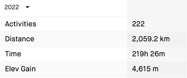 In terms of running activities, the consistency of my work is at a similar level as 2019 (the year I run my last official marathon), with an average of 5 running sessions per week – the projected number for 2022 being 260 activities, if I continue in the same fashion until the end of the year (which I intend to do).