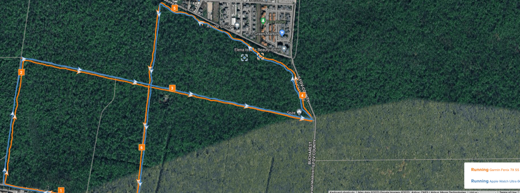 GPS accuracy – with multiband GPS, both Fenix 7X and Apple Watch Ultra are very good at measuring distance and adding points on a realistic track regardless of the tree coverage or environment – they are not perfect and not identical in their measurements, but ultimately that’s not exactly what moves me. I use a Stryd footpod with my Garmin most of the time .. with AWU you can do that only if you use the Stryd app, but not the default workout app.