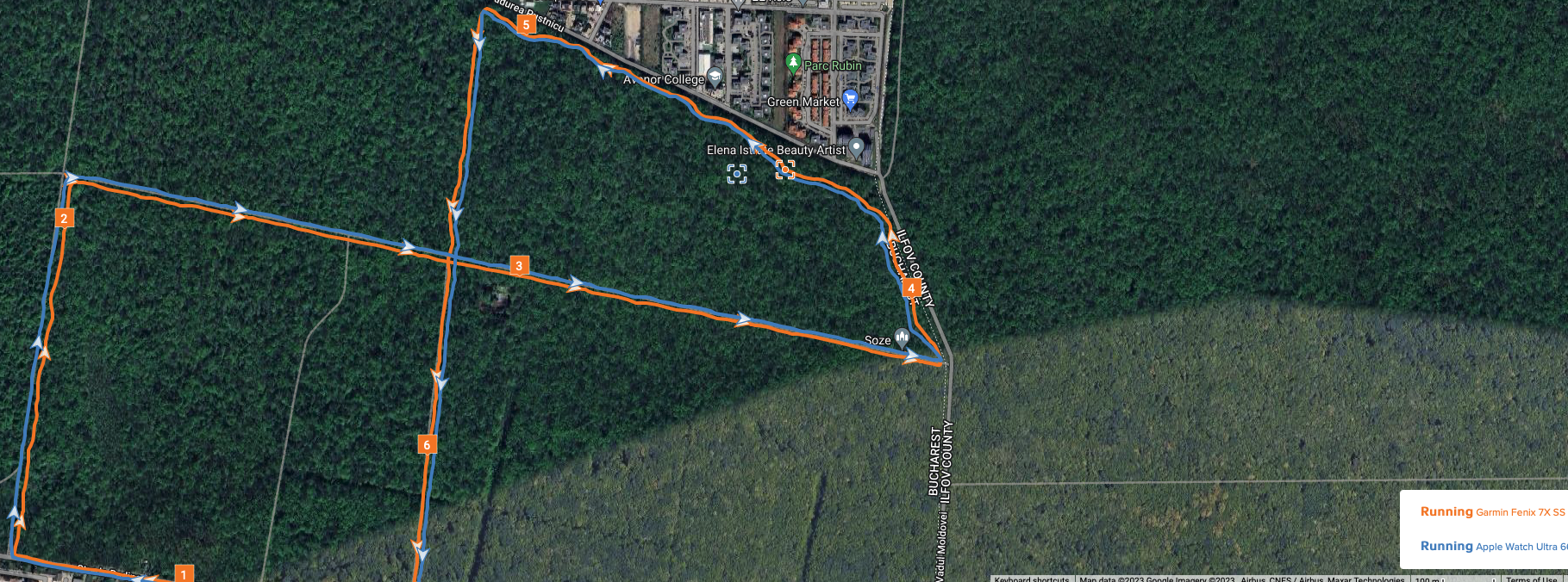 GPS accuracy – with multiband GPS, both Fenix 7X and Apple Watch Ultra are very good at measuring distance and adding points on a realistic track regardless of the tree coverage or environment – they are not perfect and not identical in their measurements, but ultimately that’s not exactly what moves me. I use a Stryd footpod with my Garmin most of the time .. with AWU you can do that only if you use the Stryd app, but not the default workout app.