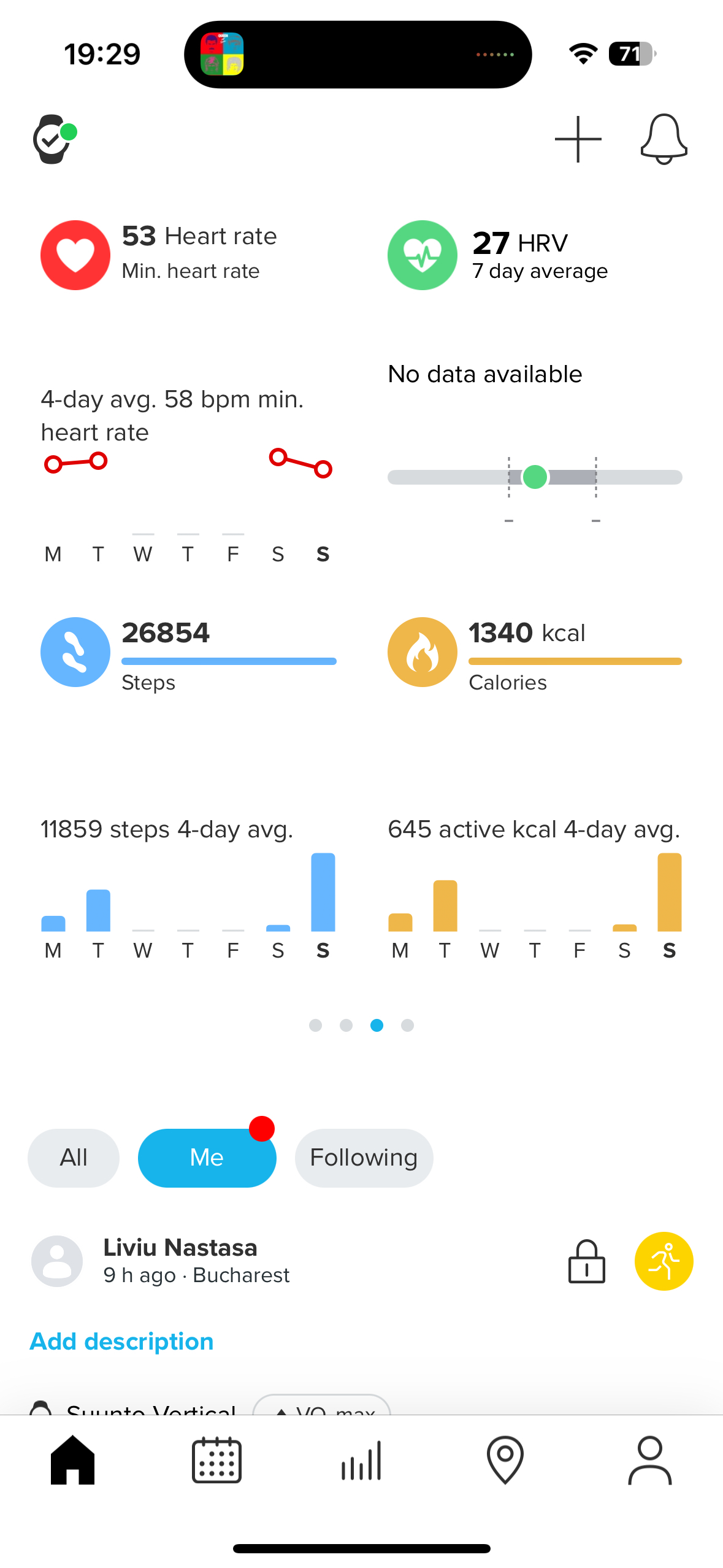 As a daily wear, the device is ok but not spectacular. I mean .. the number of steps is overestimated compared with the other devices, the sleep is underestimated (it usually is registered an hour after I’m already asleep). Suunto could do a better job with the sensors. For sleep, I’m not asking for stages analysis, but it’s the first time I see such differences of times – the Fitbit, Garmin, Polar and Apple Watch did a better job here. Based on the comments in Suunto’s forum, the issue with the sleep accuracy is new, after the recent firmware and presumably will be fixed with a subsequent update – but for now, it’s annoying. I don’t care about steps, but I’d love to see at least the sleep duration being captured right (as it’s also used in some nice stats in the app)