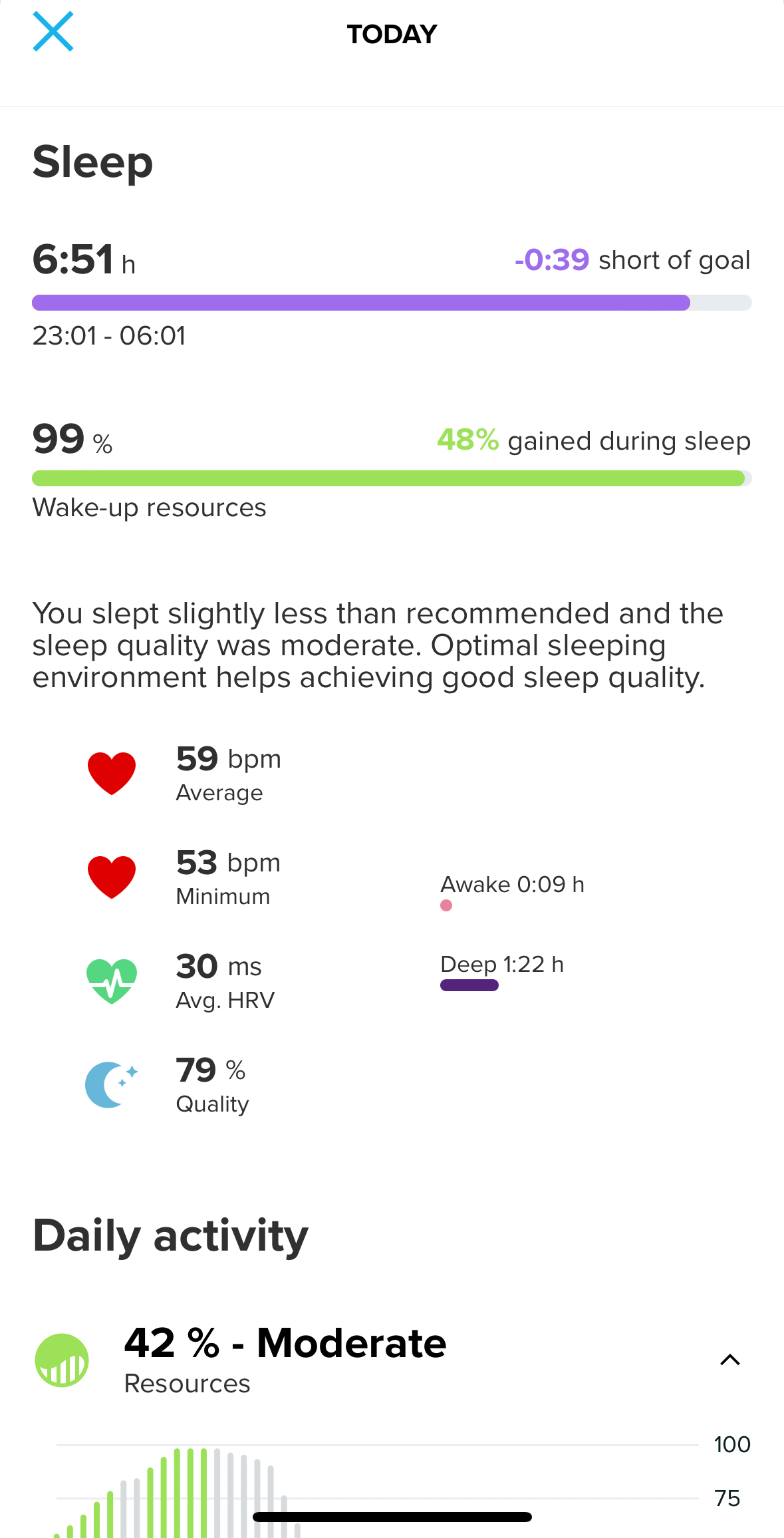 - Sleep measurement is not as good as the other devices I tried (Apple Watch Ultra, Garmin Fenix, Polar Vantage V2) – they may not agree on the sleep stages, but rarely I’ve seen differences of more the 2-5 mins between them regarding asleep time and awake time; Suunto (based on the forums, only after the latest firmware update) manages to miss the start by hours easily, thus affecting some of the recovery info