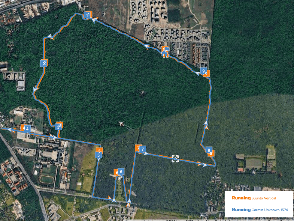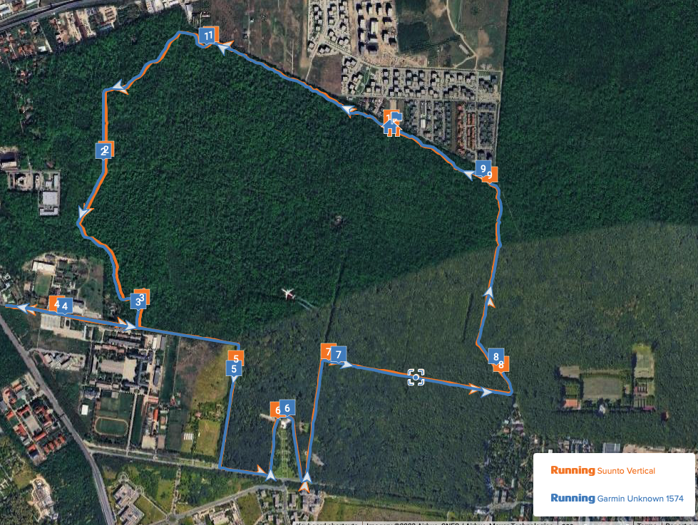 Even if the Suunto has some limitation in the number of pages (4) you can add to an activity profile, I found the information easy to see and actually better to understand when glancing at the watch during run than with the Fenix 7X. So, if it would be to pick one for using during a run, Suunto would win, because of the fonts, the lap summary and the display of the map which is somehow easier to use and very responsive. I don’t feel a need for more screens, usually I stay on one and eventually switch to map from time to time if needed .. so for me, it works fine. For HR, the sensor doesn’t look to be as good as the Garmin Elevate V4 or V5, but does a decent job for steady activities. I don’t rely on the oHR sensor anyway (except maybe with the Apple Watch) so I usually wear a Polar Verity Sense armband or H10 strap to be sure that I’m capturing accurate heart rate values with heavier watches like Fenix or Vertical.