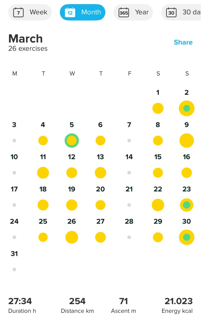 This time, I followed the plan better than in autumn, with some 1.5 weeks exception when I was travelling and couldn’t execute my workouts (read this “I wasn’t as determined as I should have been”), but focused on the running part of the training and pretty much ignored the strength sessions all together. If you’re interested in the training plan, you can find more details here https://www.mcmillanrunning.com/product/masters-half-marathon-training-plan-level-4-combo-runner/, the plan is easily available in Final Surge but also on Training Peaks. As I purchased my plan earlier last year, this was available in Final Surge and luckily I had 3 devices which were all ready to be used and synced with Final Surge – Suunto Vertical, Apple Watch Ultra and Garmin Epix Pro.