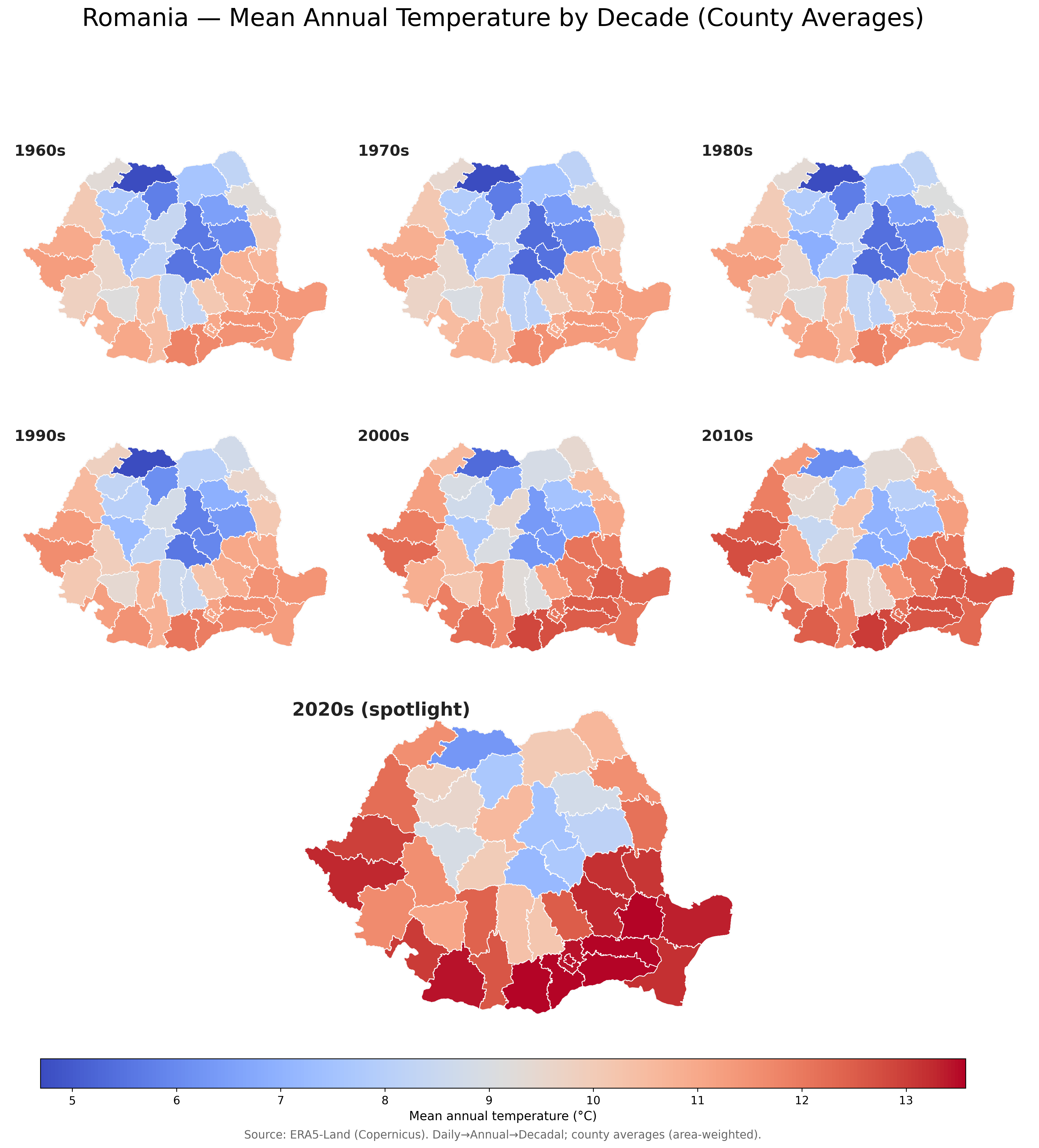 Romania isn’t warming uniformly. Geography matters – and the maps make it clear.