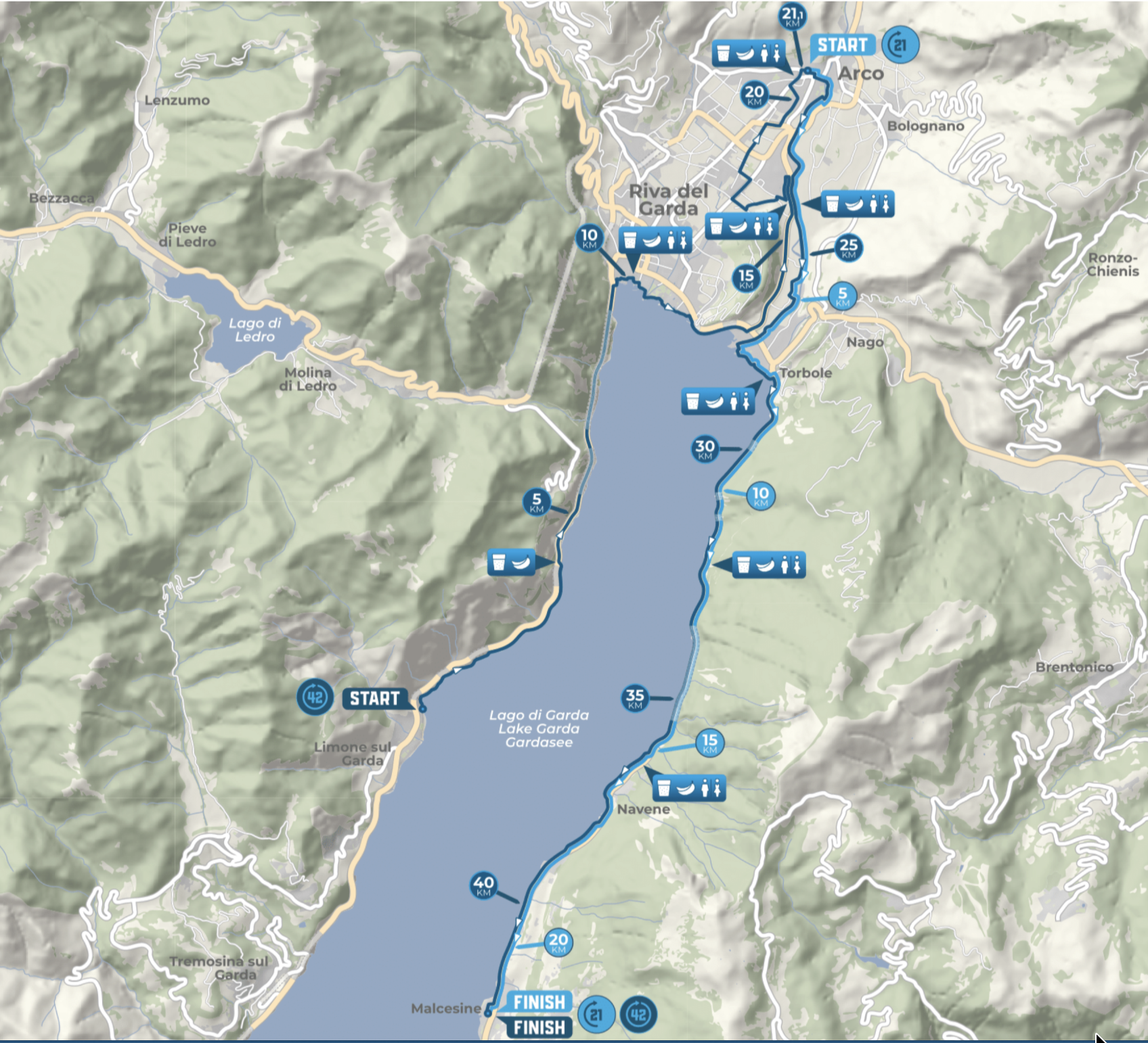 That also mattered. Once the time goal was gone, the race did not become empty. It became more available. I could still look around. I could still notice where I was. I could still enjoy the fact that, despite the poor preparation and the increasingly heavy legs, I was running around Lake Garda.