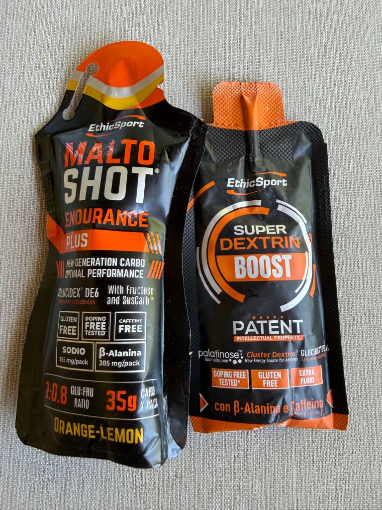 The improvised protocol was three MaltoShot Endurance gels in the first half, then three Super Dextrin Boost gels with caffeine in the second half. It worked in the practical sense that it did not obviously fail. I did not hit a classic wall, I did not feel empty, and I never had the sense that the race was collapsing metabolically.